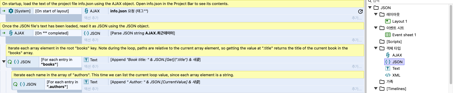 불러온 JSON 객체는 액션으로 수정 가능.