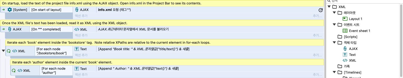 불러온 XML 객체는 액션으로 수정 불가능.