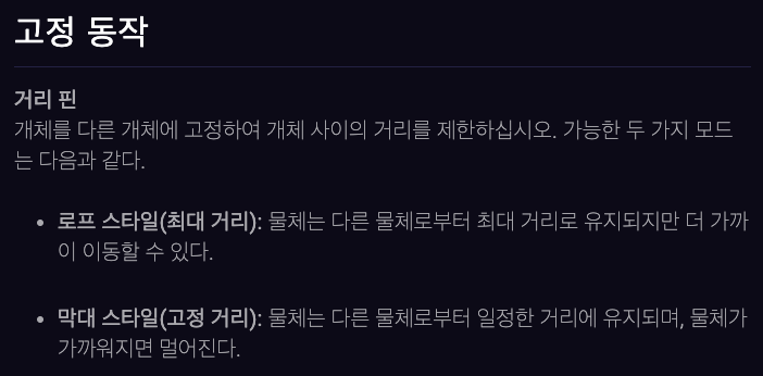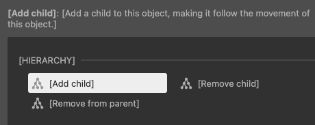 1, 2번과 다른 점은, 부모 자식 관계일 때만 가능한 액션이 불가능하단 점과 고정 동작 모드가 있다는 점, 그리고 부모 인스턴스가 자식 인스턴스를 정할 수 없다는 점입니다. 이 behavior을 가진 개체가 부모를 선택해야 하니까요.
