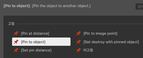 3. 자식으로 정할 객체에 Pin behavior을 추가하고, 대상을 부모로 정할 인스턴스로 정한다.