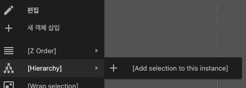 1. 레이아웃 뷰에서 두 개 이상의 인스턴스를 선택한 상태에서 부모로 정할 인스턴스를 우클릭한 후 계층으로 추가한다.
